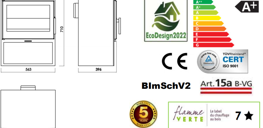 Diese Kaminöfen eignen sich für Kunden, die einen Kaminofen in einen Wohnraum mit einer moderneren Ästhetik einbauen möchten. Alle unsere modernen Kaminöfen werden im eigenen Haus nach ISO 9001-zertifizierten Standards und in Übereinstimmung mit den neuen EcoDesign 2022-Vorschriften hergestellt.